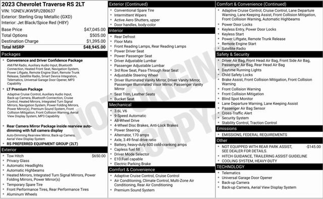 Certified. Sterling Gray Metallic 2023 Chevrolet Traverse RS AWD 9-Speed Automatic 3.6L V6 SIDI VVT