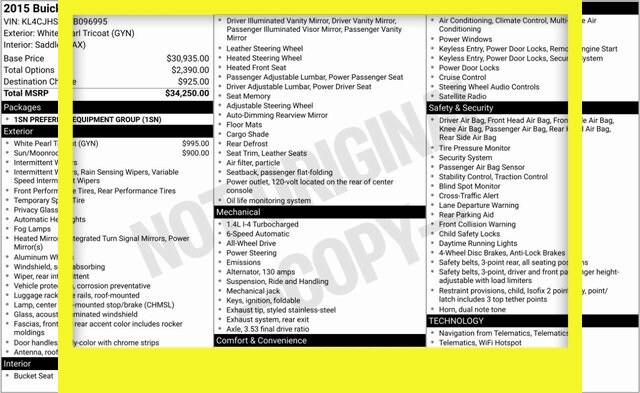 White Pearl Tricoat 2015 Buick Encore Premium AWD 6-Speed Automatic Electronic with Overdrive ECOTEC 1.4L I4 SMPI DOHC Turbocharged VVT