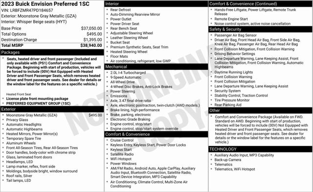 Moonstone Gray Metallic 2023 Buick Envision Preferred AWD 9-Speed Automatic 2.0L Turbocharged