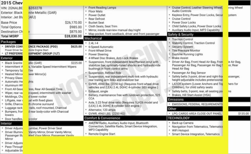 Black Granite Metallic 2015 Chevrolet Equinox LT 1LT FWD 6-Speed Automatic with Overdrive 2.4L 4-Cylinder SIDI DOHC VVT