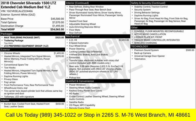 New Price! Summit White 2018 Chevrolet Silverado 1500 LTZ 1LZ 4WD 8-Speed Automatic with Overdrive EcoTec3 6.2L V8