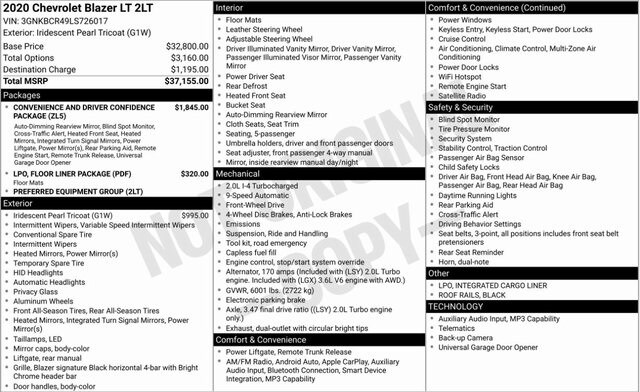Iridescent Pearl Tricoat 2020 Chevrolet Blazer LT FWD 9-Speed Automatic 2.0L Turbocharged