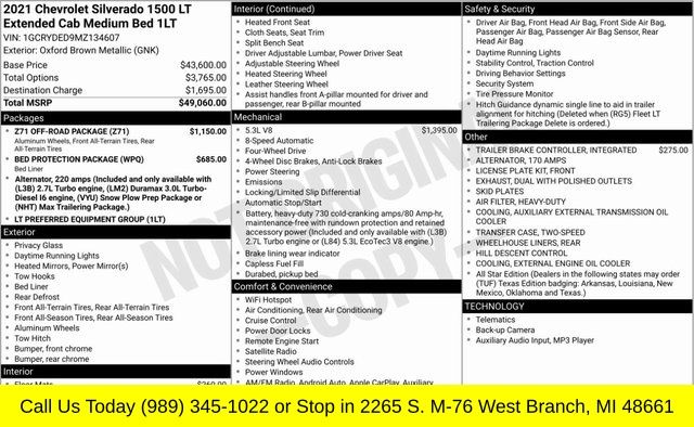 Oxford Brown Metallic 2021 Chevrolet Silverado 1500 LT LT1 4WD 8-Speed Automatic EcoTec3 5.3L V8