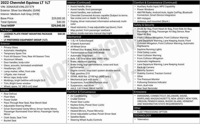 Silver Ice Metallic 2022 Chevrolet Equinox LT AWD 6-Speed Automatic Electronic with Overdrive 1.5L DOHC AWD.