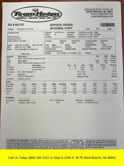 Summit White 2023 Chevrolet Blazer LT AWD 9-Speed Automatic with Overdrive 2.0L Turbocharged AWD, 1st & 2nd Row All-Weather Floor Liners (LPO), Driver Confidence Package, Floor Liner Package (LPO), Integrated Cargo Liner (LPO), Lane Change Alert w/Side Blind Zone Alert, Preferred Equipment Group 2LT, Rear Cross Traffic Alert, Rear Park Assist w/Audible Warning.
