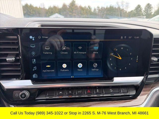 10-Speed Automatic, 4WD, Black Leather, 10-Way Power Driver Seat w/Lumbar, 12.3" Multicolor Reconfigurable Digital Display, 120-Volt Bed Mounted Power Outlet, 120-Volt Instrument Panel Power Outlet, All Star Edition Plus, All-Star Edition, Auto-Locking Rear Differential, Bluetooth® For Phone, Chevrolet Connected Access Capable, Chevytec Spray-On Black Bedliner, Chrome Mirror Caps, Color-Keyed Carpeting Floor Covering, Compass, Convenience Package, Convenience Package II, Deep-Tinted Glass, Dual Rear USB Ports (Charge Only), Dual-Zone Automatic Climate Control, Electric Rear-Window Defogger, Electrical Steering Column Lock, Electronic Cruise Control, EZ Lift Power Lock & Release Tailgate, Front Frame-Mounted Black Recovery Hooks, Front Rubberized Vinyl Floor Mats, HD Rear Vision Camera, Heated Driver & Front Outboard Passenger Seats, Heated Power-Adjustable Outside Mirrors, Heated Steering Wheel, High Capacity Suspension Package, Hitch Guidance, Hitch Guidance w/Hitch View, Inside Rear-View Mirror w/Tilt, Integrated Trailer Brake Controller, Keyless Open & Start, Leather Package, Leather-Appointed Front Seat Trim, LED Cargo Area Lighting, OnStar & Chevrolet Connected Services Capable, Power Front Windows w/Driver Express Up/Down, Power Front Windows w/Passenger Express Down, Power Rear Windows w/Express Down, Power Sliding Rear Window w/Rear Defogger, Preferred Equipment Group 1LT, Protection Package, Rear 60/40 Folding Bench Seat (Folds Up), Rear Rubberized-Vinyl Floor Mats, Rear Wheelhouse Liners, Remote Start Package, Remote Vehicle Starter System, SiriusXM w/360L, Standard Tailgate, Steering Wheel Audio Controls, Theft Deterrent System (Unauthorized Entry), Trailering App, Trailering Package, Universal Home Remote, Wheels: 20" x 9" Painted Aluminum, Wi-Fi Hot Spot Capable, Wireless Phone Projection, Wrapped Steering Wheel.