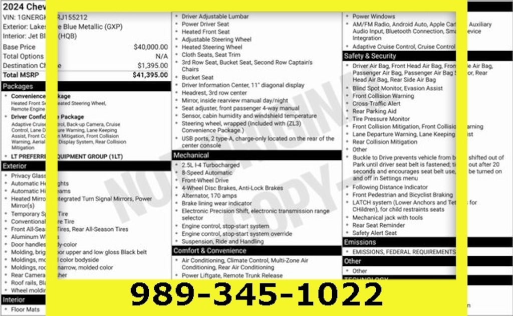 Lakeshore Blue Metallic 2024 Chevrolet Traverse LT 1LT FWD 8-Speed Automatic 2.5L DOHC **ONE OWNER**, **NON SMOKER**, **BLUETOOTH**, **REMOTE START**, **LOCAL TRADE IN**, Navigation System, Preferred Equipment Group 1LT.