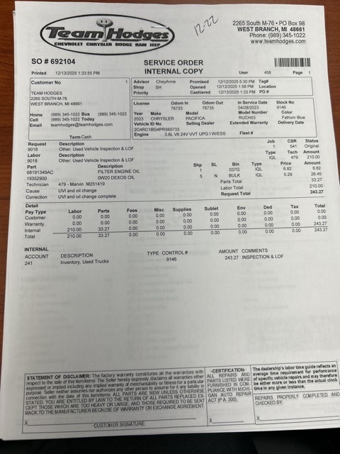 Fathom Blue Pearlcoat 2023 Chrysler Pacifica Touring L FWD 9-Speed 948TE Automatic 3.6L V6 24V VVT **BLUETOOTH**, **REMOTE START**, Quick Order Package 27L.