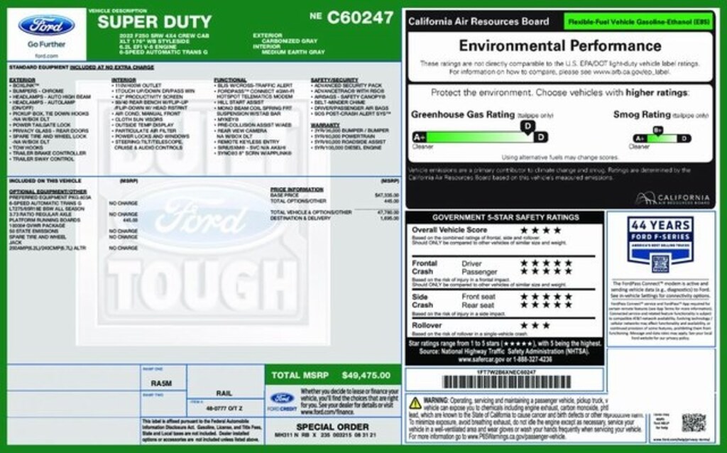 Carbonized Gray Metallic 2022 Ford F-250SD XLT 4WD 6-Speed Automatic 6.2L V8 EFI SOHC 16V Flex Fuel **LOCAL TRADE IN**, 4WD, GVWR: 10,000 lb Payload Package.