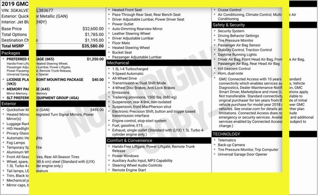 Quicksilver Metallic 2019 GMC Terrain SLT AWD 9-Speed Automatic 1.5L DOHC **BLUETOOTH**, **REMOTE START**, **LOCAL TRADE IN**, AWD, 6-Way Power Front Passenger Seat, Front Passenger 2-Way Power Lumbar, Hands-Free Rear Power Programmable Liftgate, Heated Steering Wheel, Memory Package, Preferred Equipment Group 4SA, Preferred Package, Universal Home Remote.