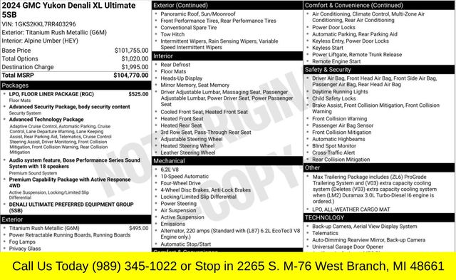 Titanium Rush Metallic 2024 GMC Yukon XL Denali Ultimate 4WD 10-Speed Automatic with Overdrive EcoTec3 6.2L V8