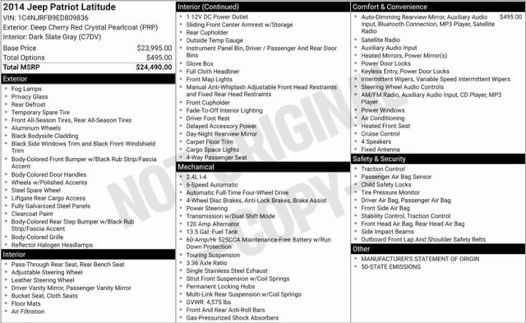 Deep Cherry Red Crystal Pearlcoat 2014 Jeep Patriot Latitude 4WD 6-Speed Automatic 2.4L I4 DOHC 16V Dual VVT **ONE OWNER**, **LOCAL TRADE IN**, 4WD, Dark Slate Gray Cloth, Quick Order Package 2GB, Remote Start System.