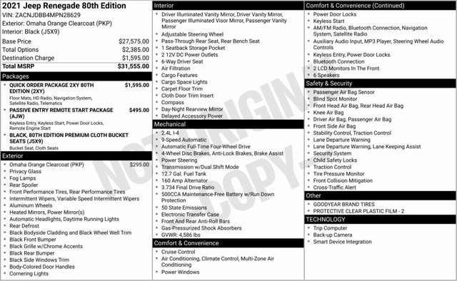 Omaha Orange Clearcoat 2021 Jeep Renegade 80th Edition 4WD 9-Speed 948TE Automatic 2.4L I4 **BLUETOOTH**, **REMOTE START**,