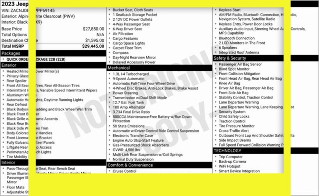 Alpine White Clearcoat 2023 Jeep Renegade Latitude 4WD 9-Speed 948TE Automatic 1.3L I4 Quick Order Package 22B.