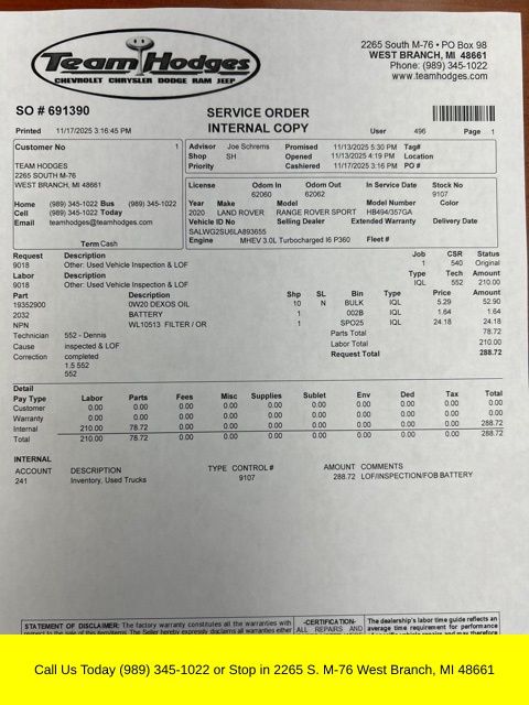 Inspection completed, oil and filter changed, total reconditioning cost $439.