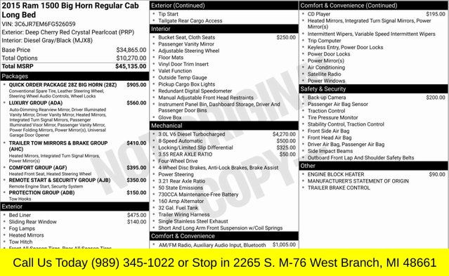 Deep Cherry Red Crystal Pearlcoat 2015 Ram 1500 Big Horn 4WD 8-Speed Automatic EcoDiesel 3.0L V6