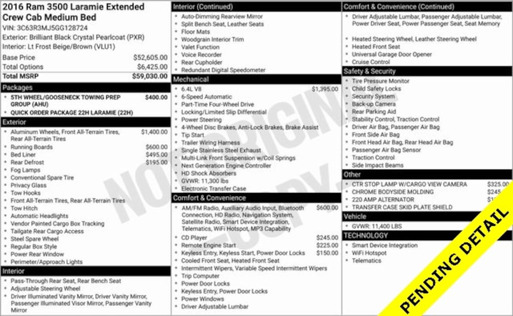 - 5th Wheel/Gooseneck Towing Prep Group$400
