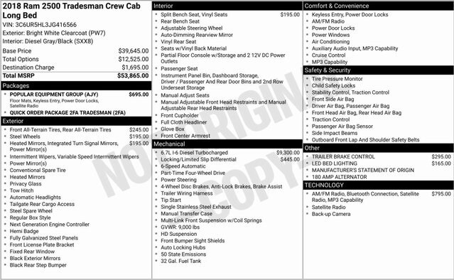 Bright White Clearcoat 2018 Ram 2500 Tradesman 4WD 6-Speed Automatic Cummins 6.7L I6 Turbodiesel