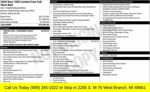 Bright White Clearcoat 2020 Ram 1500 Limited 4WD 8-Speed Automatic EcoDiesel 3.0L V6