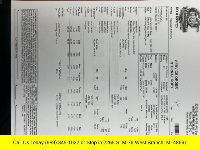Inspection completed, oil and filter changed, replaced cabin air filter, total reconditioning $467.