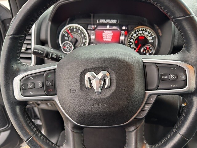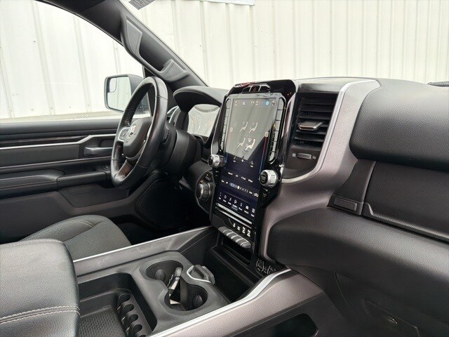 115V Auxiliary Power Outlet, 12" Touchscreen Display, 2nd Row In Floor Storage Bins, 400W Inverter, 4G LTE Wi-Fi Hot Spot, 9 Amplified Speakers w/Subwoofer, Air Conditioning ATC w/Dual Zone Control, All R1 High Radios, All Radio Equipped Vehicles, Apple CarPlay, Auto-Dimming Exterior Driver Mirror, Auto-Dimming Rear-View Mirror, Bed Utility Group, Big Horn Badge, Big Horn Level B Equipment Group, Black Exterior Mirrors, Black Premium Power Mirrors, Class IV Receiver Hitch, Cluster 7.0" TFT Color Display, Connected Travel & Traffic Services, Connectivity - US/Canada, Convex Wide-Angle Exterior Mirror Insert, Disassociated Touchscreen Display, Exterior Mirrors Courtesy Lamps, Exterior Mirrors w/Heating Element, Exterior Mirrors w/Supplemental Signals, For Details, Visit DriveUconnect.com, For More Info, Call 800-643-2112, Front Fog Lamps, Global Telematics Box Module (TBM), Glove Box Lamp, Google Android Auto, GPS Antenna Input, GPS Navigation, HD Radio, Heated Front Seats, Heated Steering Wheel, Integrated Center Stack Radio, Integrated Voice Command w/Bluetooth, LED Footwell Lighting, Media Hub w/2 Charge Only USBs, MOPAR 4 Adjustable Cargo Tie-Down Hooks, MOPAR Deployable Bed Step, MOPAR Spray In Bedliner, ParkSense Front/Rear Park Assist w/Stop, Pick-Up Box Lighting, Power 2-Way Driver Lumbar Adjust, Power 8-Way Driver Seat, Power Adjustable Pedals, Power-Folding Mirrors, Quick Order Package 27Z Big Horn, Radio: Uconnect 5 Nav w/12.0" Display, Rear Dome w/On/Off Switch Lamp, Rear Power Sliding Window, Rear Window Defroster, Remote Start System, Security Alarm, SiriusXM Radio Service, SiriusXM Satellite Radio, SiriusXM w/360L, Sun Visors w/Illuminated Vanity Mirrors, Universal Garage Door Opener, USB Host Flip.