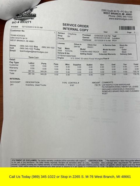 Black 2008 Toyota Tundra 4WD 6-Speed Automatic Electronic i-Force 5.7L V8 DOHC **Mechanics Special**,